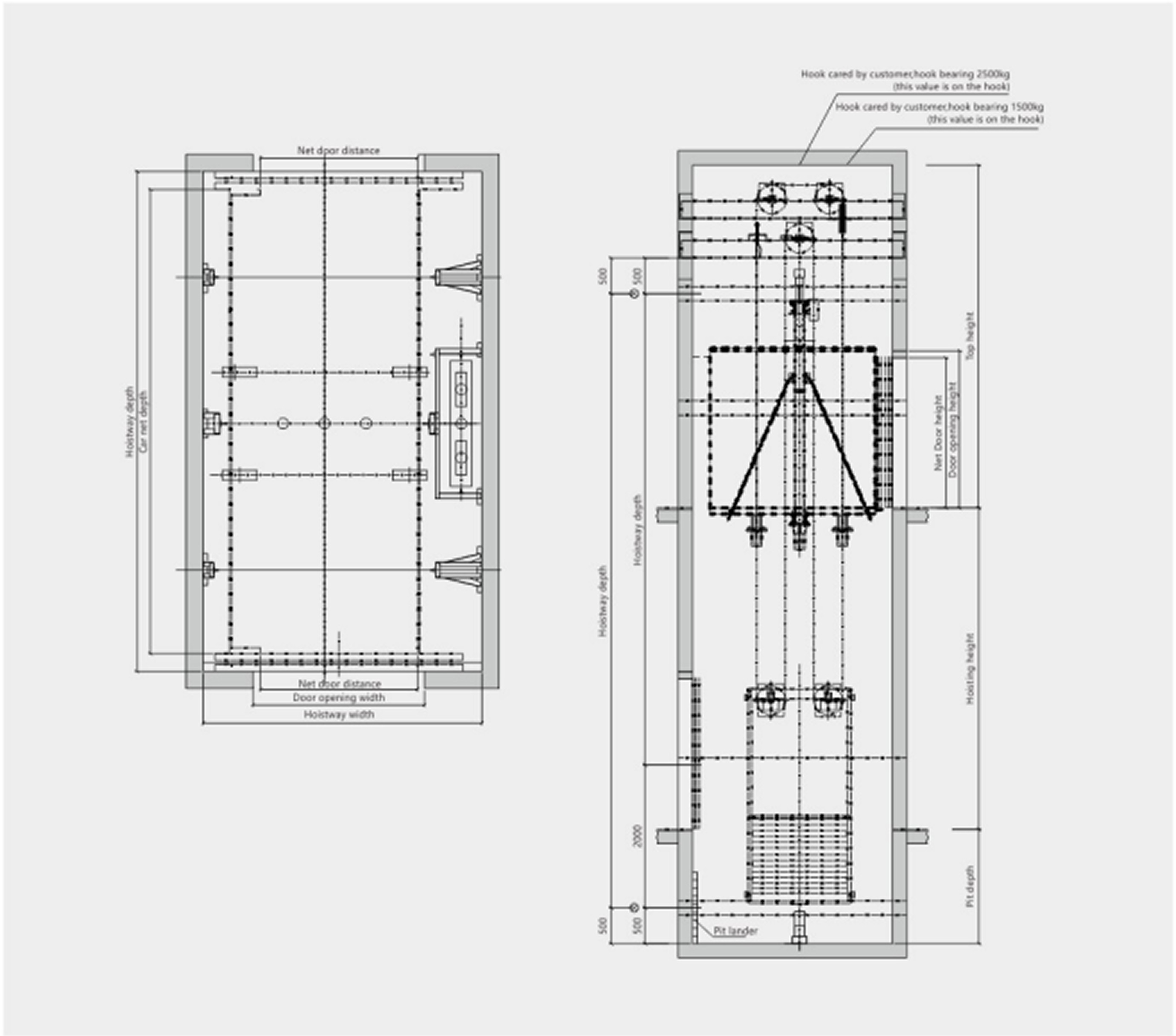 Door opening: Project specific (typically ~2.3–2.6 m wide; height as applicable)