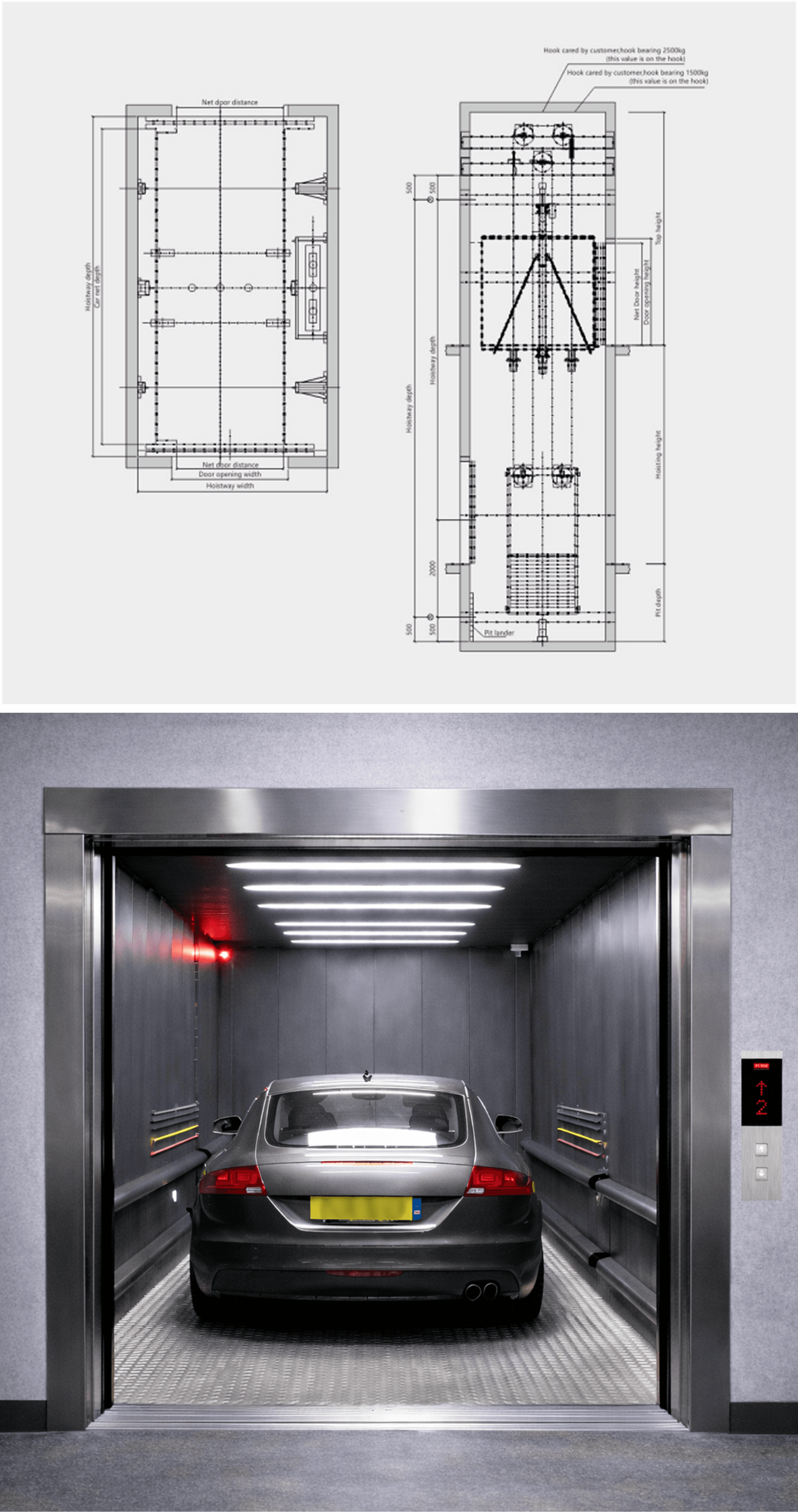 Capacity: 3000–5000 kg (typically one car, project dependent)