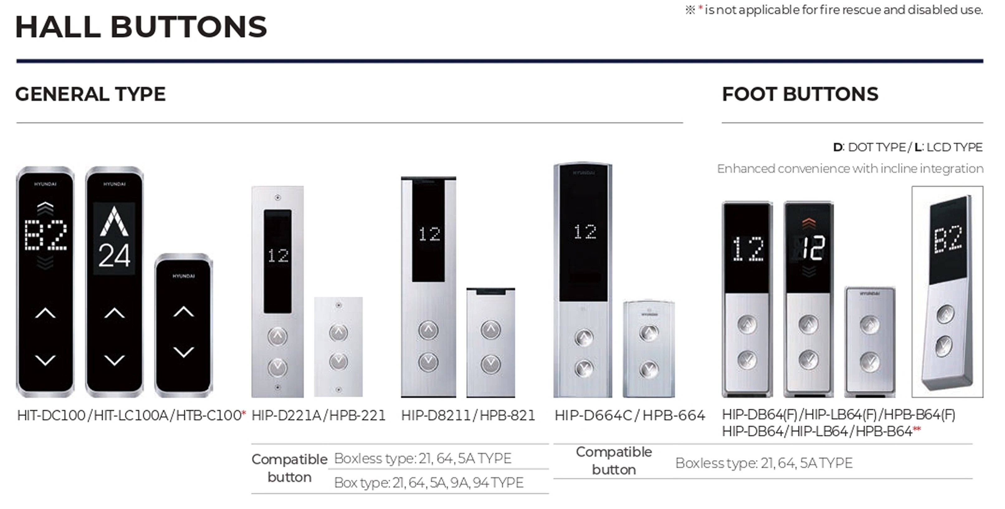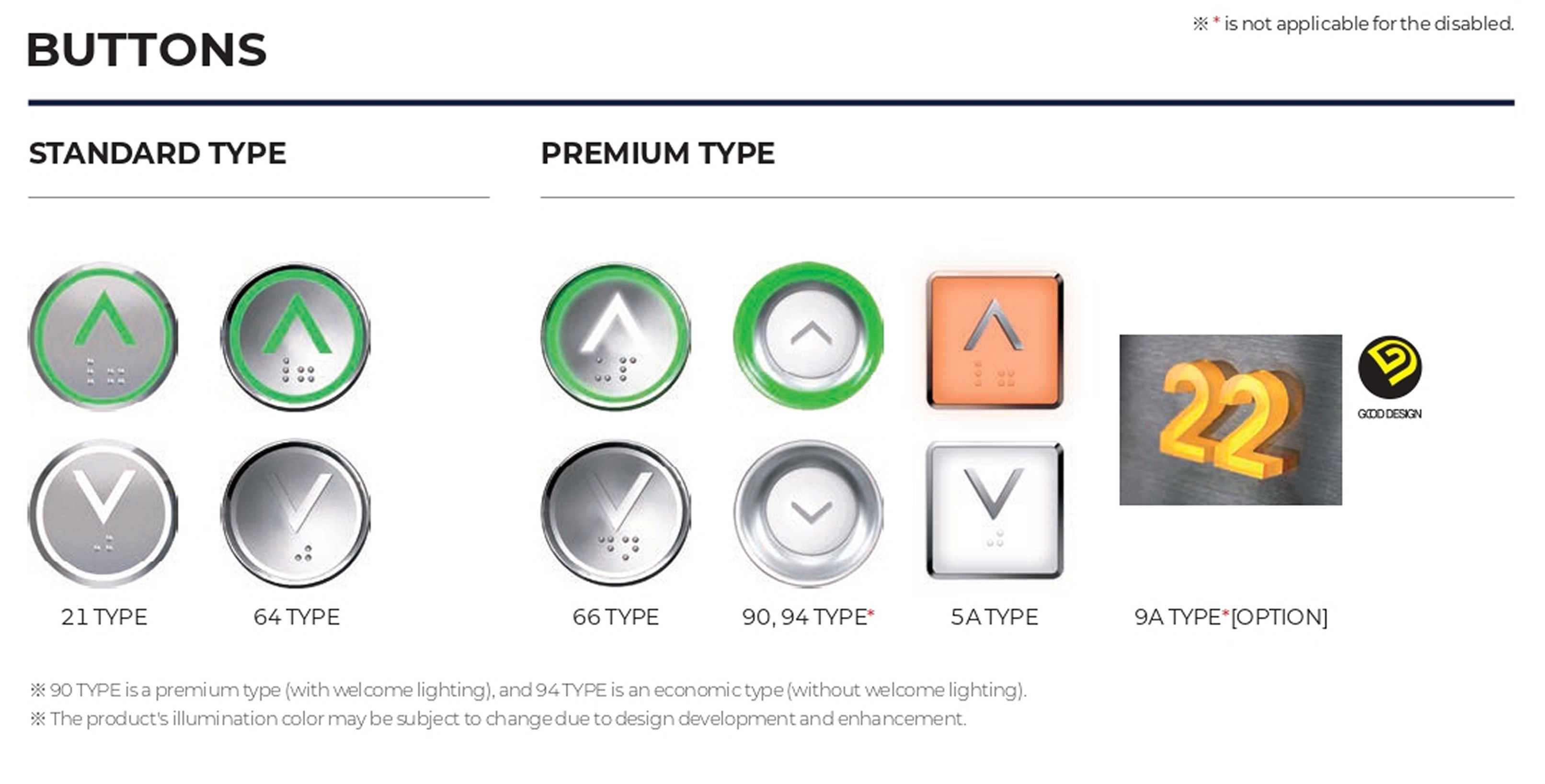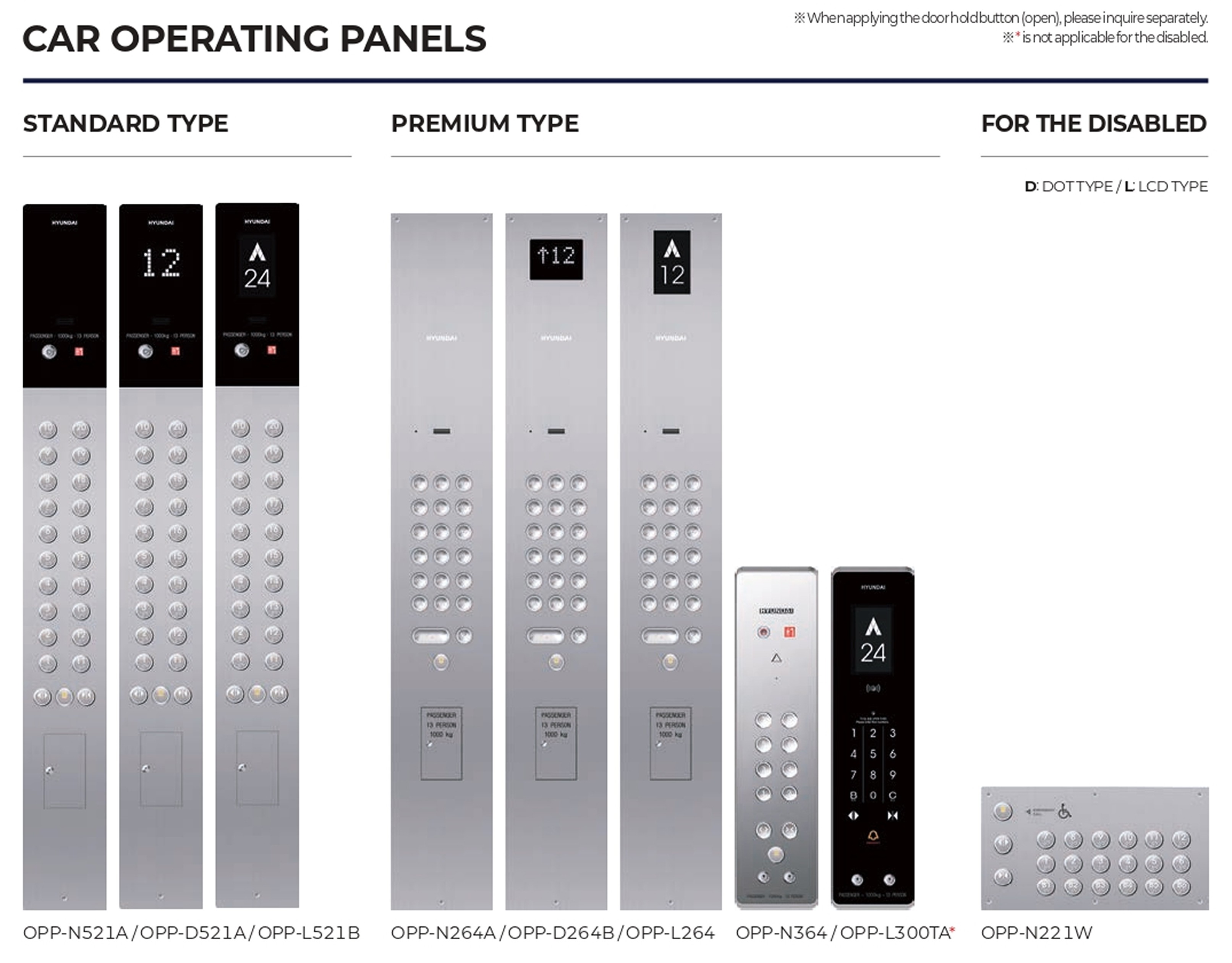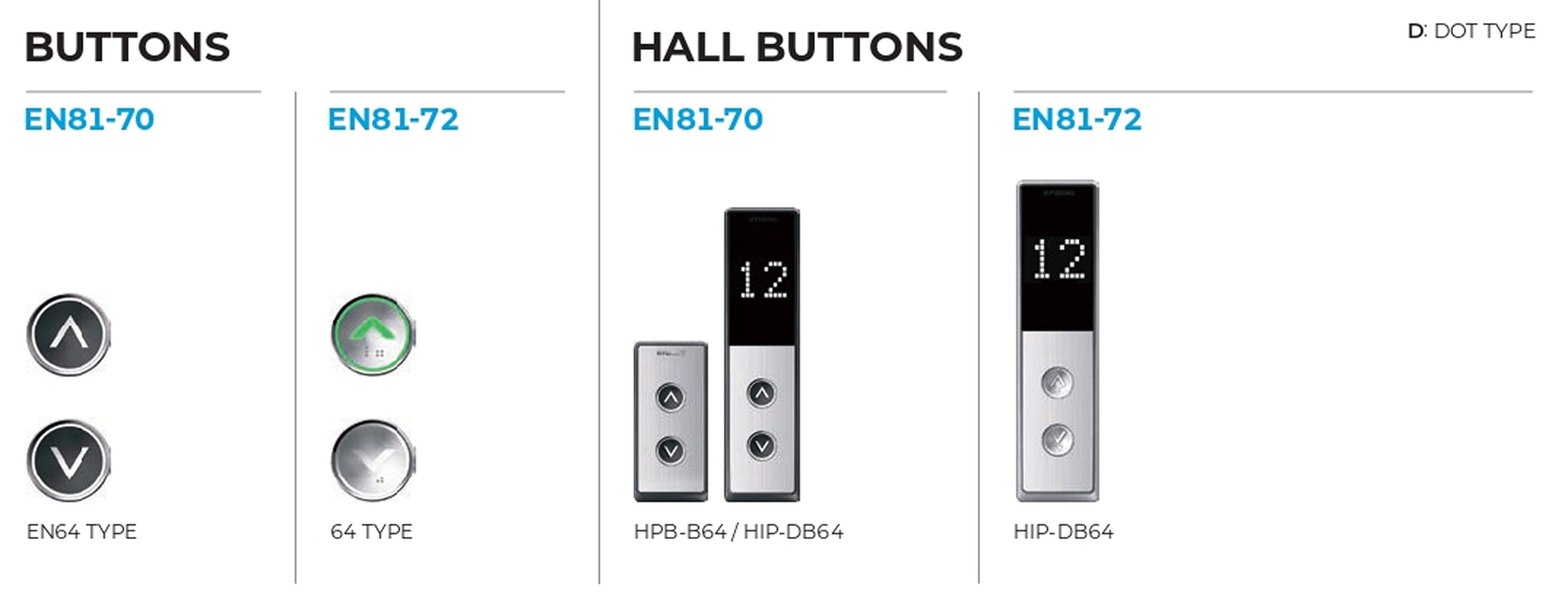 COP/LOP: push‑button, indicator and display options (as applicable)