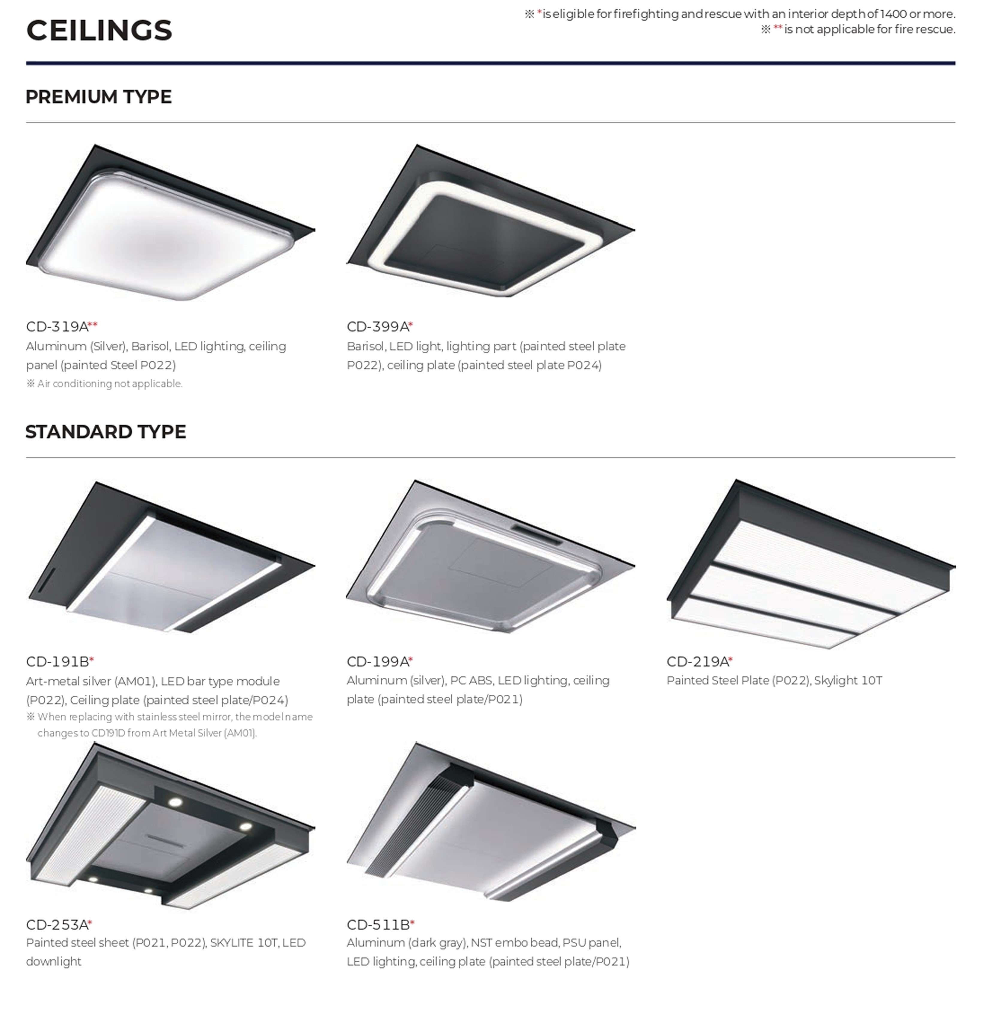Stainless steel, laminate, and painted cabin finishes (as applicable)